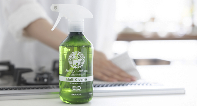 Happy Elephant の泡マルチクリーナーは、床や窓、お風呂場からトイレ、キッチンまでこれ一本でOK!
